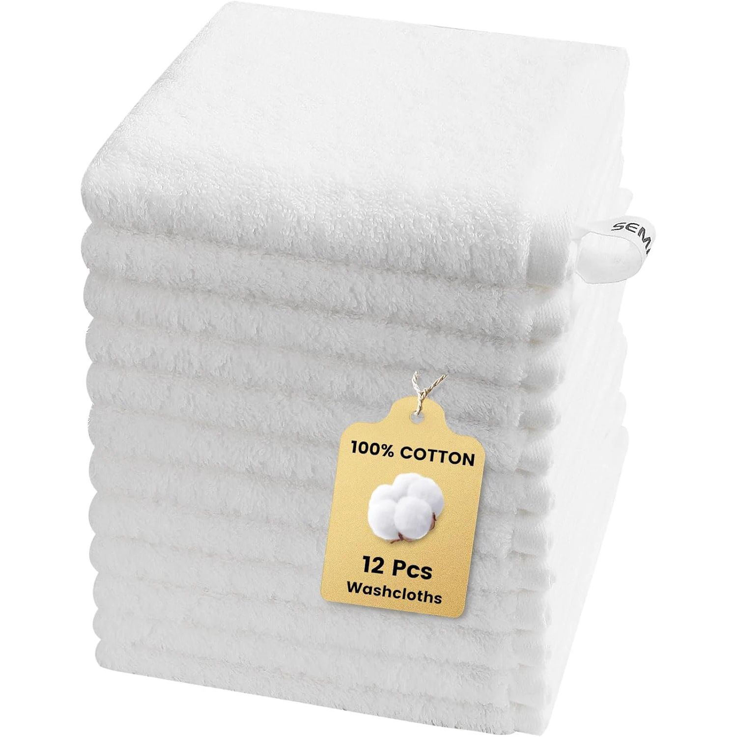 12 Pack Cotton Washcloths Solid Bulk Set SEMAXE 100% Cotton Ultra Soft Face Towels Absorbency for Bathroom Spa Cleaning Supplies