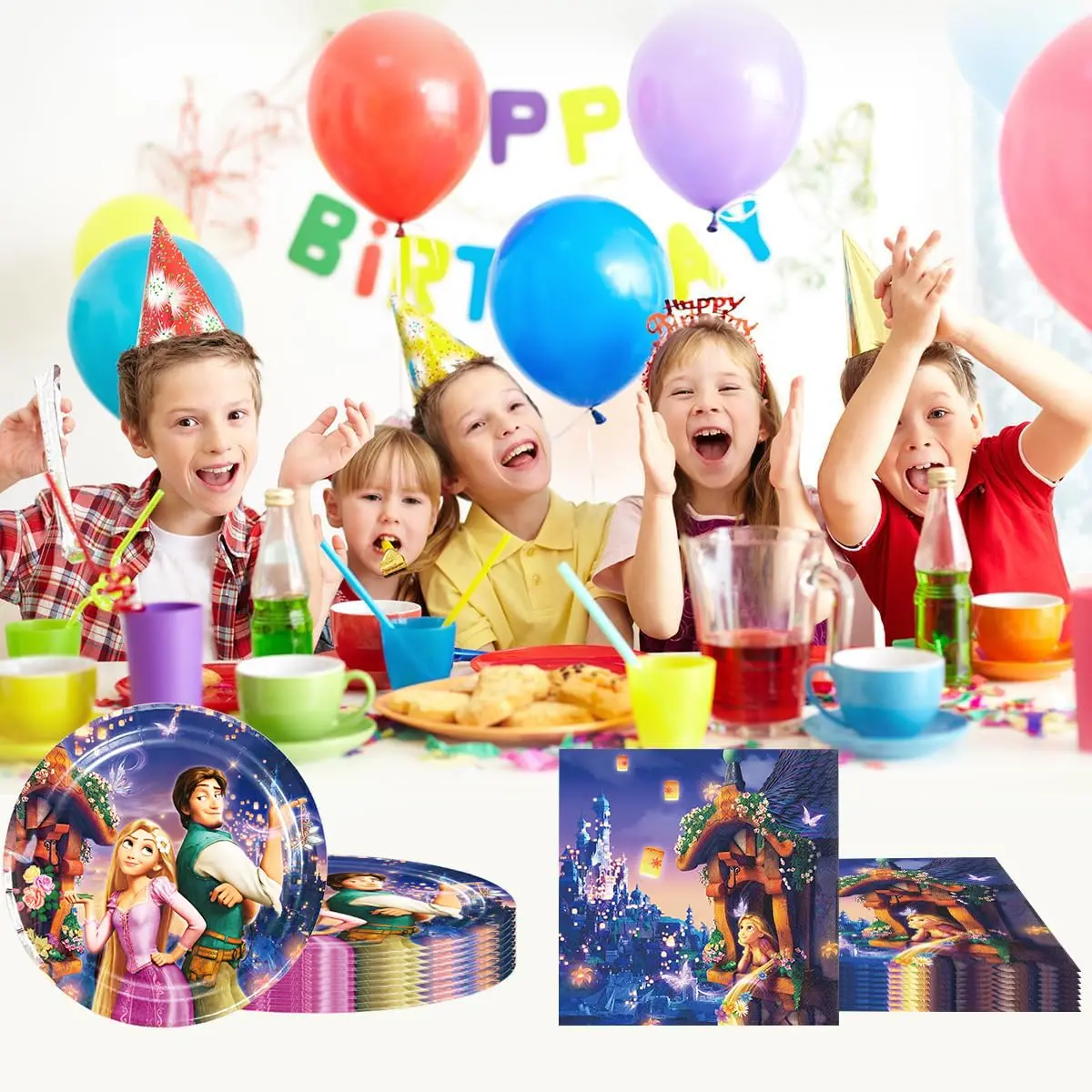Disney Tangled Rapunzel Princess Party Decorations Disposable Paper Cup Plate Banner Balloons for Girls Birthday Party Supplies