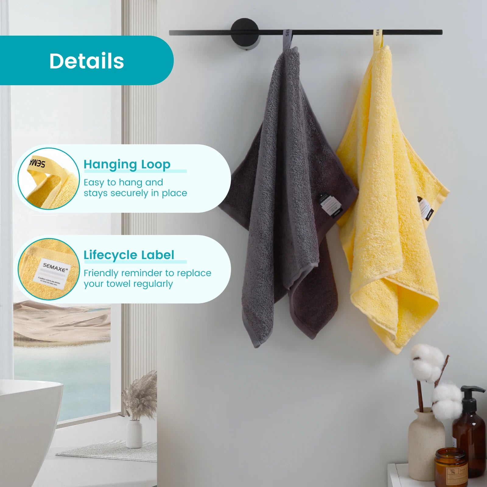 Special Feature: Skin Friendly, Super Absorbent, Lightweight, Hanging Loop, Super Soft