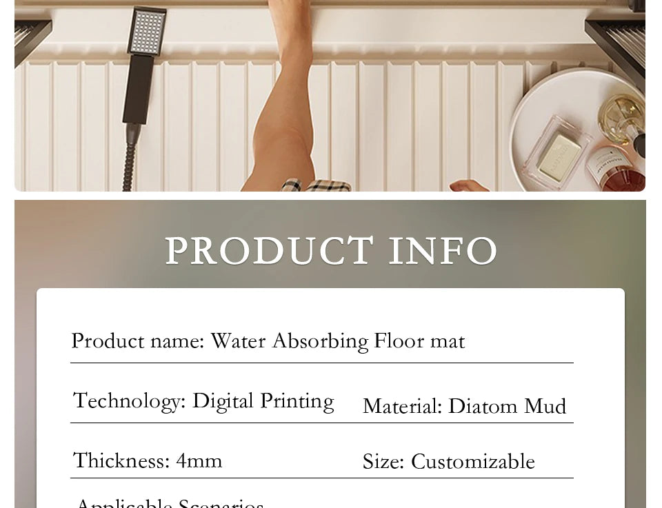This floor mat is made of diatomaceous mud material. Its main feature is water absorption, oil absorption, quick drying, and anti slip. Place it at the door of the bathroom to reduce water accumulation and quickly absorb water from your feet.Prevent dirt, reduce kitchen chores, and at the same time, its soft and elastic fabric can also protect tableware from falling and breaking.