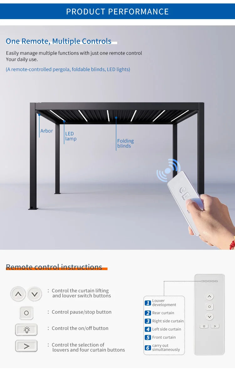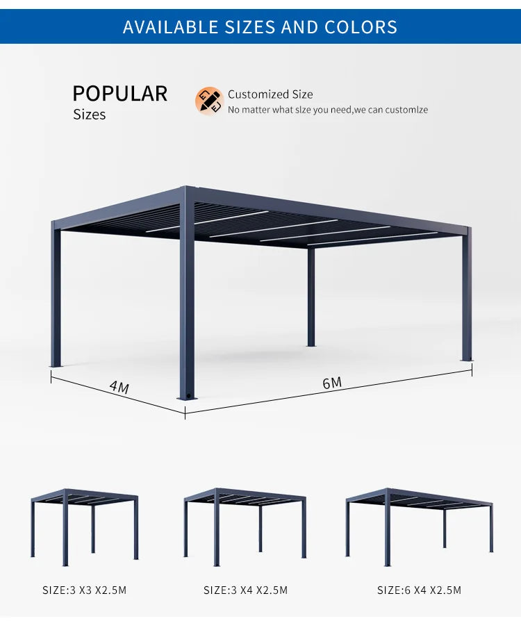 2.If 1 piece Pergola size is less than 9 square meter. we charges as 9 square meter. If 1 Pergola blind size over 9 square meter. we charges it according to the real size.