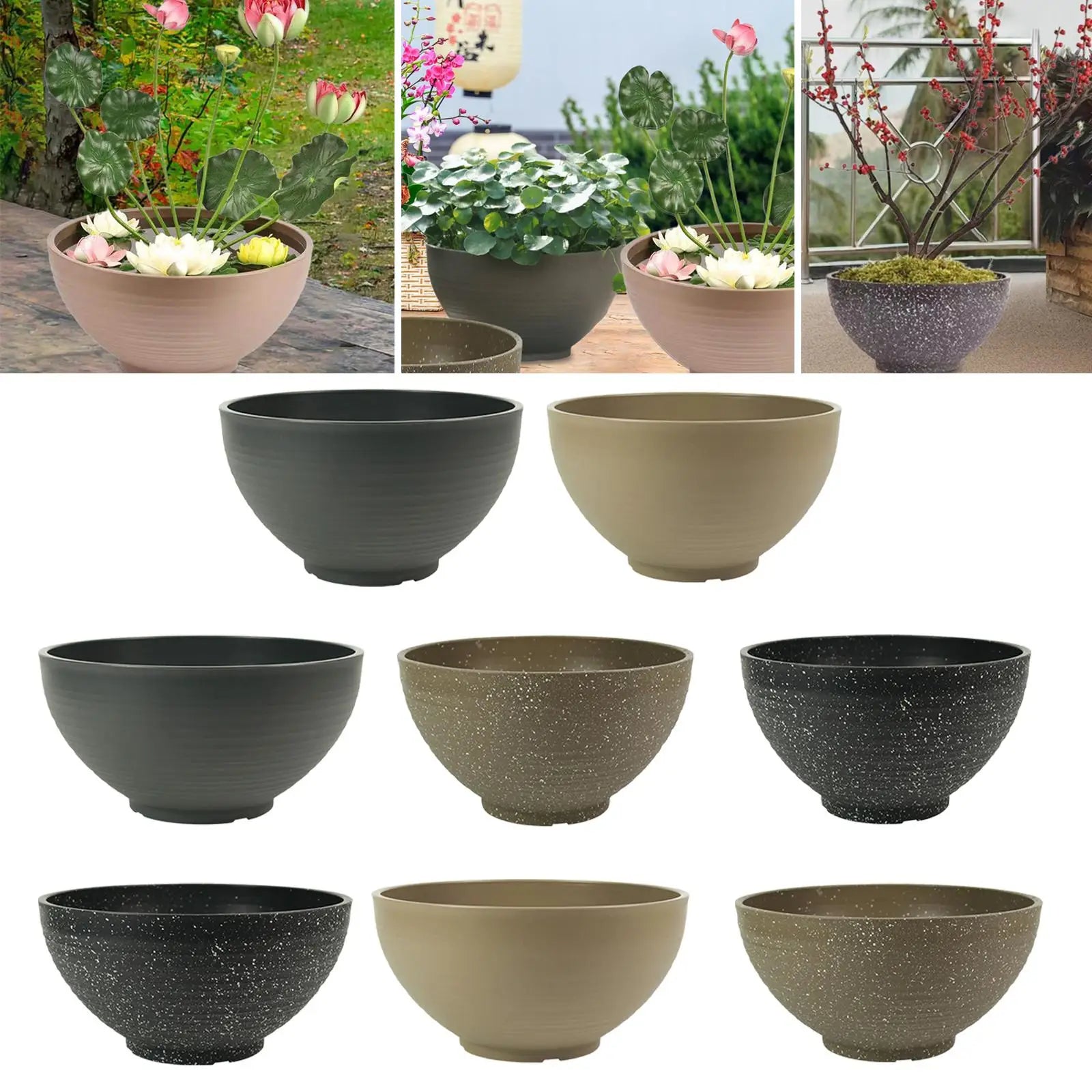 【Material】: The garden bowl planter is made of PP material, is sturdy, easy to clean, and can be used for a long time
