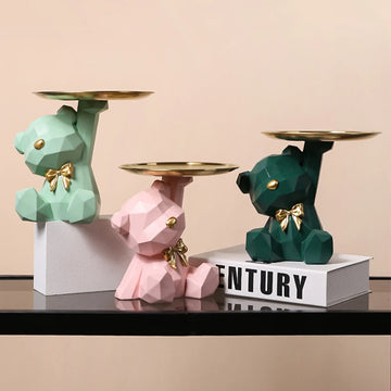 ![]() Geometric Bear Key Holder Figurine with Pallet Resin Storage Box Decor Entrance Crafts Household Supplies for Office Coffee Shop