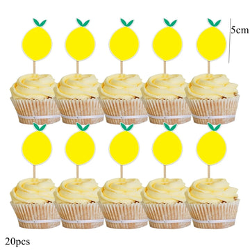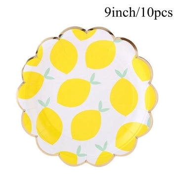 Lemon Disposable Tableware Paper Cups Plates Cake Toppers for Summer Lemon Happy Birthday Pool Party Decoration DIY Cake Supply