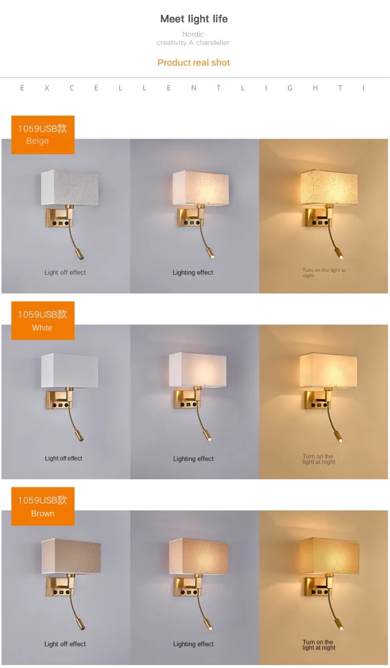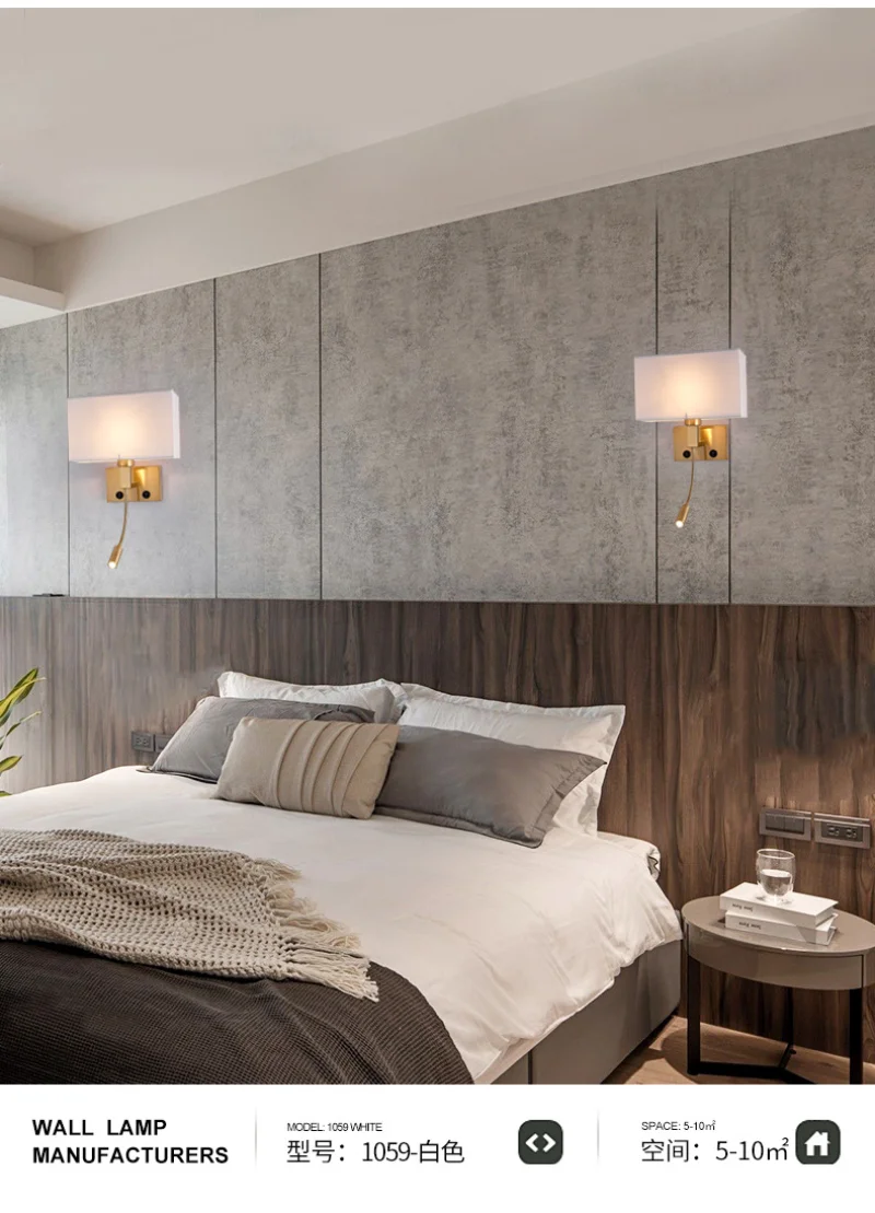 Modern Bedroom Bedside Hotel Wall Lamp Decoration Fabric Sconce Lights Reading Lighting Spotlight Simple Cotton Luminaire Indoor