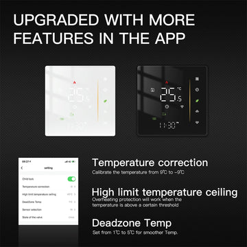 Working with Alexa Google Home offers simple voice command control;New arrival is updated with the child lock,deadzone Temp. and sensor selection functional in the APP.