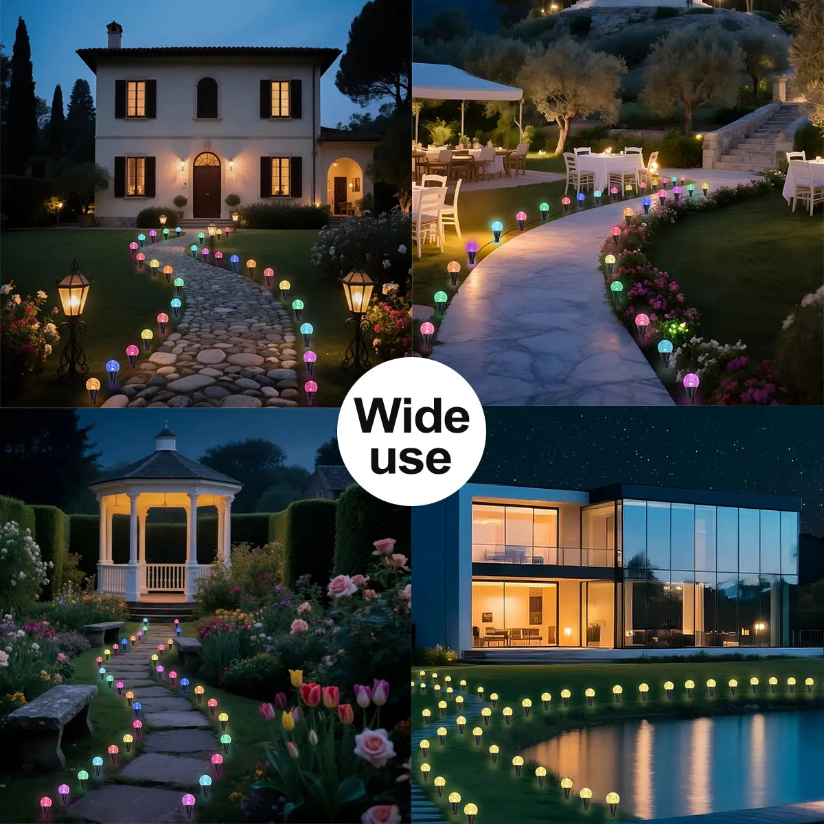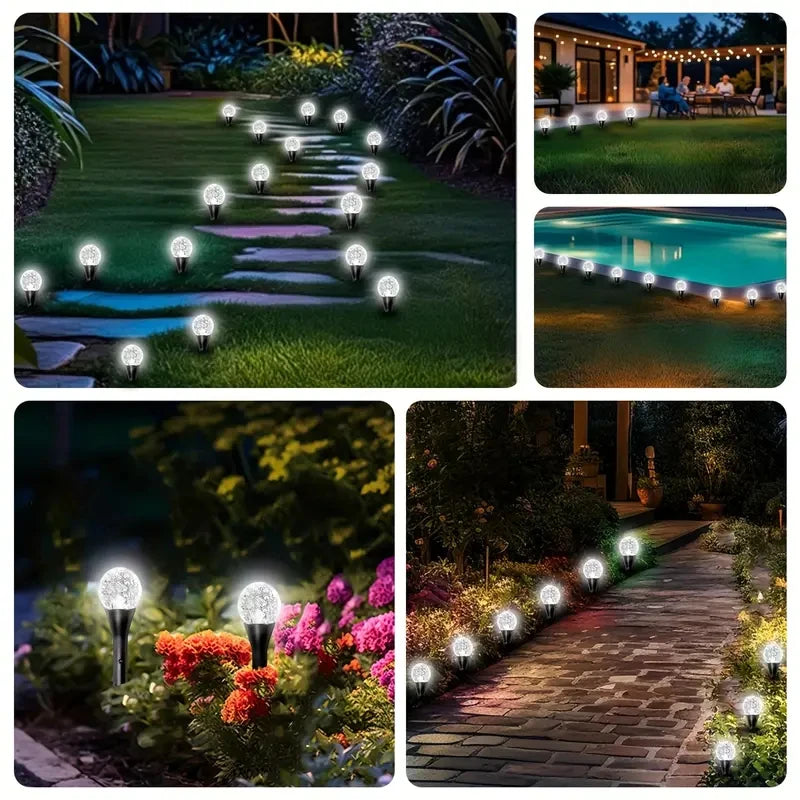Solar ball lights are suitable for sidewalks, patios, gardens, lawns, driveways, backyards, Halloween, Christmas and other holiday decorations and other outdoor environments, the vivid bubble ball shape can create a romantic feeling.
