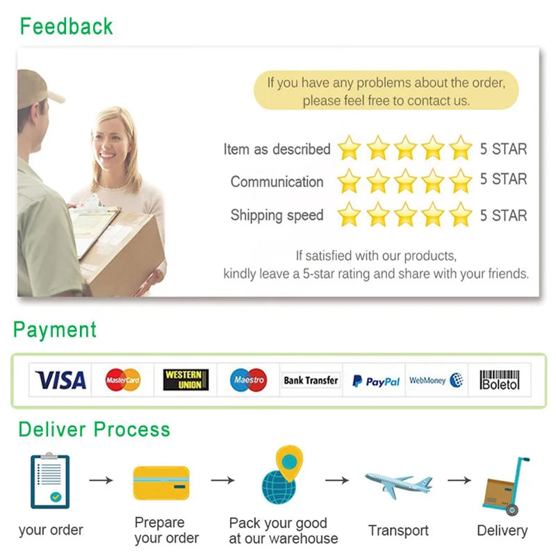 1:When you receive the package, please check it in time, if you have any questions, please feel free to contact us, I will solve it for you in the fastest time.